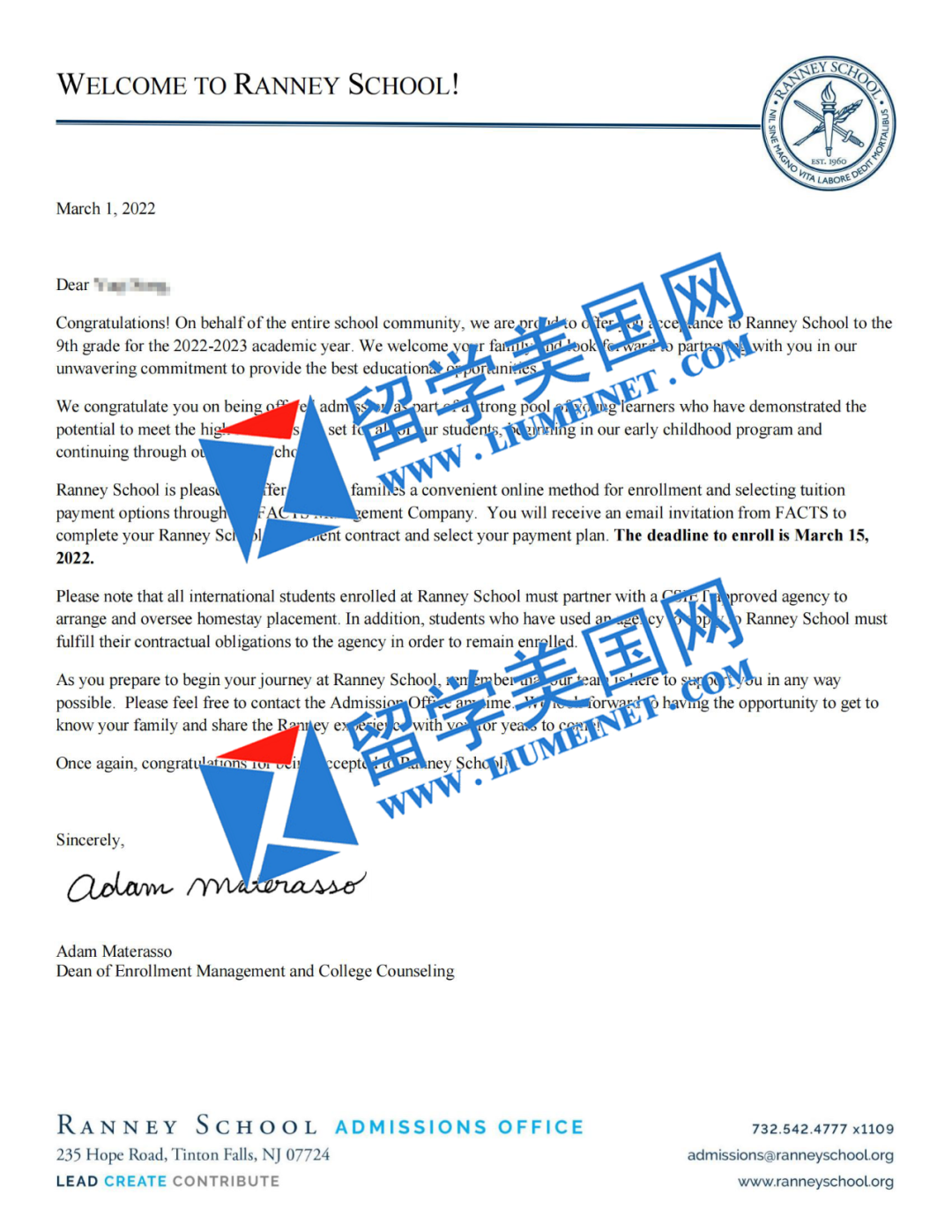 兰尼中学位于新泽西州富人区TINTON FALLS城镇,交通便利,位于纽约和费城之间。学校招收7-12年级的国际生,是一所走读混校。石老师走访考察过学校,我们也有多名学生就读。Ranney提供25门AP课程(3门数学,6门历史,2门英语,5门科学,2门计算机科学,1门西班牙语,1门表演艺术,4门视觉艺术),并有机会获得STEAM或
