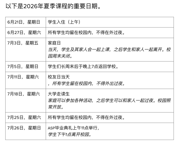 总之,ASP兼具学术挑战、广泛课程选择、寄宿社区体验与大学规划准备,是一个让学生在浓缩5周的时间里,全方位成长与探索的机会。