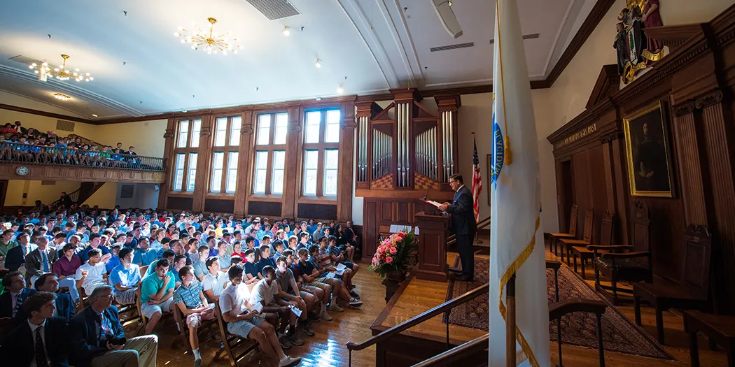 101 Saint Theresa Avenue West Roxbury, MA 02132 www.roxburylatin.org 学校简介 罗克斯伯里拉丁学校是由约翰·艾略特于1645年查尔斯国王一世统治时期建立,这是北美历史最悠久的一所学校。学校占地117英亩,坐落在马赛诸塞州的西罗克斯,地理位置非常优越,交通也非常方便。这是一所小型的,独立走读学校,招收7-12年级的男孩。该校希望每个男孩都能成为他们想要成为的人,希望他们能关心他人,希望他们能做有意义甚至伟大的事情。这所学校充满激情、才华横溢且敬业的教师会帮助学生实现这一愿景。 学校通过严格的课程设置来培养学生的学术成就。学校强调主要学科的基本技能:艺术、英语、历史、古典和现代语言、计算机科学、数学和科学。在后期,在学生掌握了基本技能后,我们的学术课程变得越来越灵活。男孩可以从各种选修课中选择他们最感兴趣的科目。学校还提供大量的校内和校外独立学习的机会。 艺术成果每天都在罗克斯伯里拉丁学校展出。学生们最新的水彩作业或绘画项目在校长办公室外熙熙攘攘的楼梯间排列,在罗斯马尼埃大厅可以听到古典钢琴音乐。学校有十个校队和许多非体育类的课外活动,包括体育和戏剧表演、出版物和模拟联合国、合唱团和辩论会等等。 罗克斯伯里拉丁学校Roxbury Latin School拥有117英亩的超大校园,对于走读学校来说还是非常大的,设施也是非常先进的,包括罗斯曼尼耶厅、史密斯艺术中心、鲍尔科学中心、阿尔伯特-戈登场馆、室内运动设施和轩尼诗溜冰场以及贾维斯食堂;8个运动场和12个网球场等等。 学校特色 1.地理位置:位于马萨诸塞州西罗克斯伯里,波士顿西南端。 2.特色项目:在过去的四个赛季中,机器人俱乐部团队设计并制造了12台机器人,其中8台符合南部新英格兰冠军赛资格,其中1台晋级了VEX世界锦标赛。 3.学术项目:以古典学为基础,注重思维锻造,同时在严谨的支持氛围中激发学生的学术热情。 4.艺术项目:艺术项目提供丰富的经验--课程、音乐会、戏剧、展览和实地考察,以加深男孩对艺术的认识,培养他们对艺术的欣赏,并激发他们自己的创造性冲动。具体课程有水彩简介、技术戏剧简介、木工、应用艺术、工作室艺术、音乐鉴赏、AP音乐理论、戏剧。 5.体育项目:学校总共拥有 32支体育队伍 ,这意味着学生有大量机会参与不同水平的竞赛,无论是初学者还是精英运动员,都能找到适合自己的平台。 6.社团活动:具体俱乐部有合唱团、拉托音(无伴奏合唱)、少年合唱团、爵士乐队、吉他合奏团、室内乐合奏团、VEX机器人队、国际象棋、古典文学俱乐部、辩论和公开演讲、戏剧、关注环境的学生组织(ECOS)、法语俱乐部、西班牙语俱乐部、人类家园、模拟联合国等。 7.校内寄宿:走读学校,不提供寄宿。 8.大学升学:升学率100%,其中47%的学生在国家优秀学生计划中获得认可。众多学生被哈佛大学、耶鲁大学、宾夕法尼亚大学、芝加哥大学等顶尖大学录取。 基本信息 建校时间:1645年 学生数量:310人 学校性质:私立男校 校园面积:117英亩 宗教背景:无宗教 师生比:7:1 开设年级:7-12 SAT/ACT均分:1450 国际生年级:7-12 年级 ESL:不提供 学校设施 学校设施齐全,佩里大楼 (主教学楼)、鲍尔科学中心 (含演讲厅)、恩斯特翼 (数学与语言教室);史密斯艺术中心 (剧院、艺术工作室、排练空间)、埃文斯合唱室;阿尔伯特·戈登体育馆、室内运动设施 & 轩尼诗溜冰场、麦克内摔跤馆、8个运动场、12个网球场、越野跑道;贾维斯食堂、鲁斯马尼耶厅 (礼堂)、图书馆、伯恩斯坦茶室。 学校周边 罗克斯伯里拉丁学校所在的西罗克斯伯里是波士顿的一个街区,学校自身占地广阔,达117英亩。虽然地处城市,但校园内包含了8个运动场、12个网球场、一个室内曲棍球场和一个越野跑道,绿意盎然。这使得学校周边环境在都市便利与自然宁静之间取得了不错的平衡。 当地气候:四季分明,夏季温暖潮湿,冬季寒冷多雪,春秋两季则非常宜人。 附近城市:波士顿 周边大学:哈佛大学,麻省理工学院,波士顿学院 附近机场:波士顿洛根国际机场(20分钟车程) 课程设置: AP课程:AP音乐理论、AP拉丁语5、AP欧洲历史、AP经济学、AP美国政府与政策、AP统计学、AP微积分AB、AP微积分BC、AP计算机科学 科学课:Roxbury Latin的科学课程力求为学生提供实践经验,创造机会进一步探索和展示课堂上讨论的理论概念。三级、二级和一级的学生必须至少通过两门实验科学课程,通常情况下,80%以上的学生将学习三或四门高级科学课程,其中还包括工程和环境科学专题。具体课程有:科学与技术、物理科学概论、数学-科学调查、概念性物理学、物理学、化学和荣誉化学、生物学、环境科学、工程和设计的主题等。 数学课程:课程的一个独特之处在于我们的四级课程,数学-科学调查(MSI)。这门课程由四班的所有成员以异质分组的方式学习,为我们的学生提供了跨学科的经验。除了课程之外,有兴趣的学生还有机会在区域性和全国性的外部竞赛中挑战自己。这些比赛包括Mathcounts、Math Madness在线比赛,以及一系列美国数学竞赛:AMC-8、AMC-10、AMC-12、AIME和USA(J)MO。 具体课程有数学、代数、数学-科学调查、几何学、分析报告、AP统计学、AP微积分、数学中的高级课题、多变量微积分。 艺术课程:艺术项目提供丰富的经验--课程、音乐会、戏剧、展览和实地考察,以加深男孩对艺术