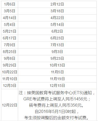 2017年中国GRE网考日期
