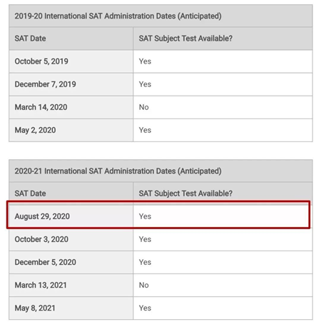 根据CB官网最新信息显示:2020-2021年度增加8月亚洲SAT考试,取消11月SAT2单科考试。