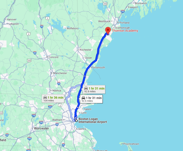 Saco客运中心提供通往波特兰、波士顿的火车。学校距离大西洋仅几分钟路程,距离缅因州的白山和新罕布什尔州仅1小时,15分钟时间即可到达缅因州最大的城市波特兰,波特兰是缅因州的文化艺术中心。学院距波士顿仅90英里,可方便乘坐火车到达。