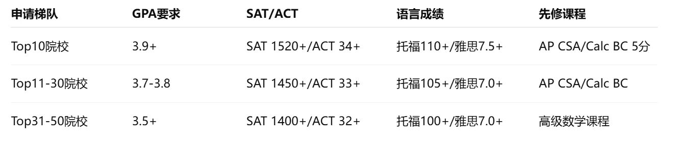 在Top 30大学的CS申请池中,SAT 1500+、GPA 3.8+已成为标配,而非优势。一位哥伦比亚大学招生官坦言:“我们不是在寻找成绩单完美的学生,而是在寻找能用代码改变世界的潜力股。”