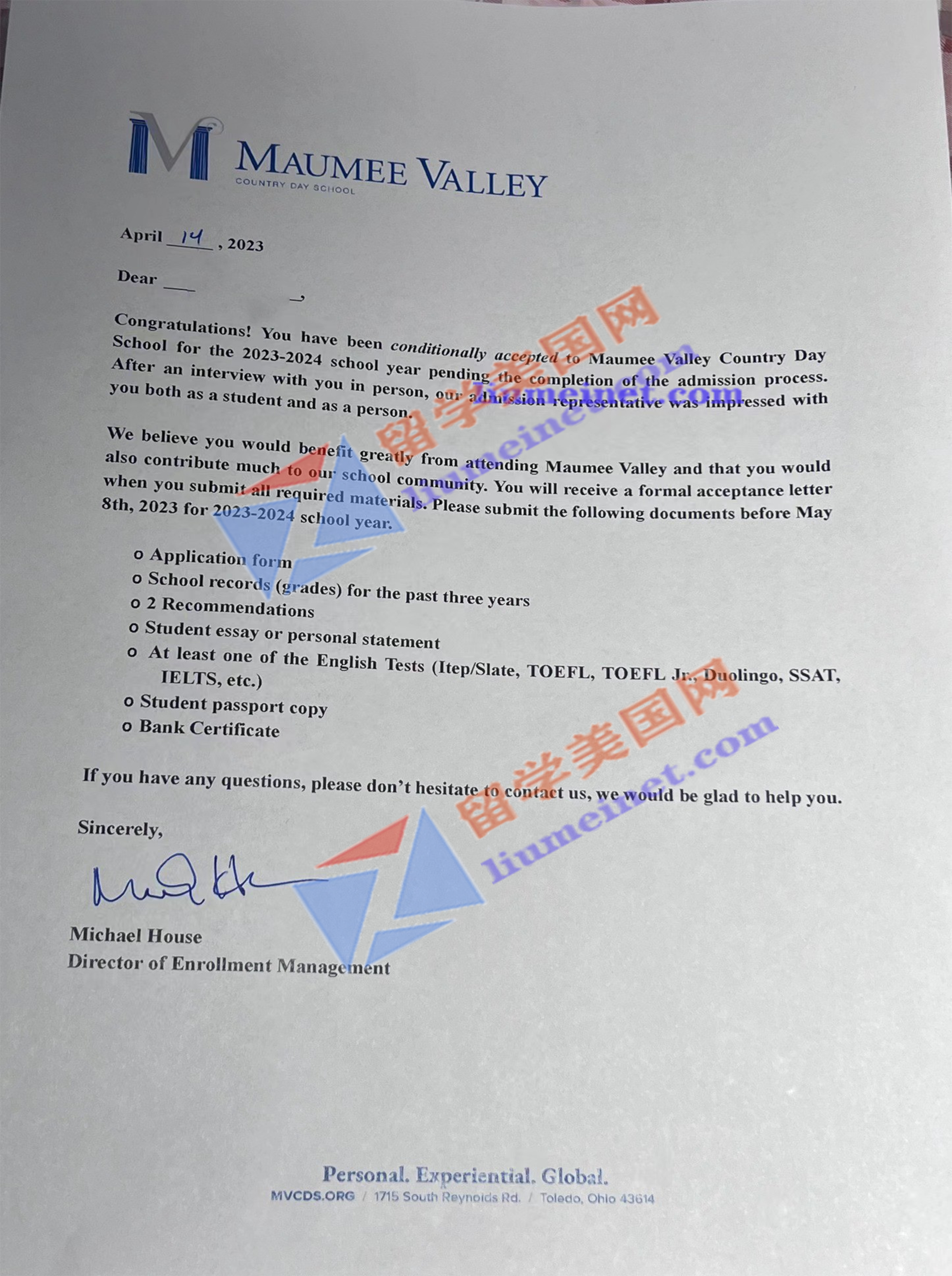 咱们留美网的Y同学在4月16日当天就斩获了莫米谷学校Maumee Valley Country Day School和福克斯克罗夫特学院Foxcroft Academy的录取offer!