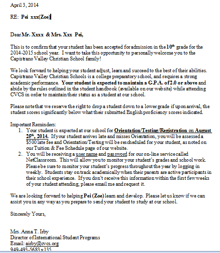 您的需求,是我们服务的宗旨:恭喜裴同学获心仪高中录取!