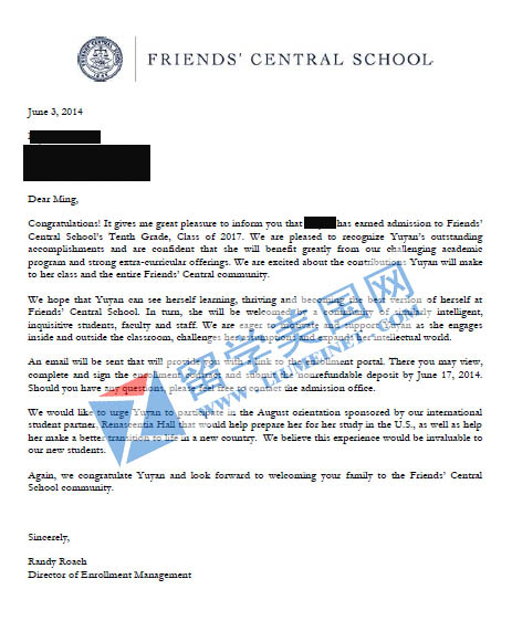 通过丰富的学校资源和过硬的人脉关系,我们为王同学在贵格中央学校-一所优质的东部学校争取到了名额.接着是马不停蹄的准备材料.在接到王同学申请的第二天就递交了申请,效率不可谓不高.接下来是申请的另一个关键-面试.
