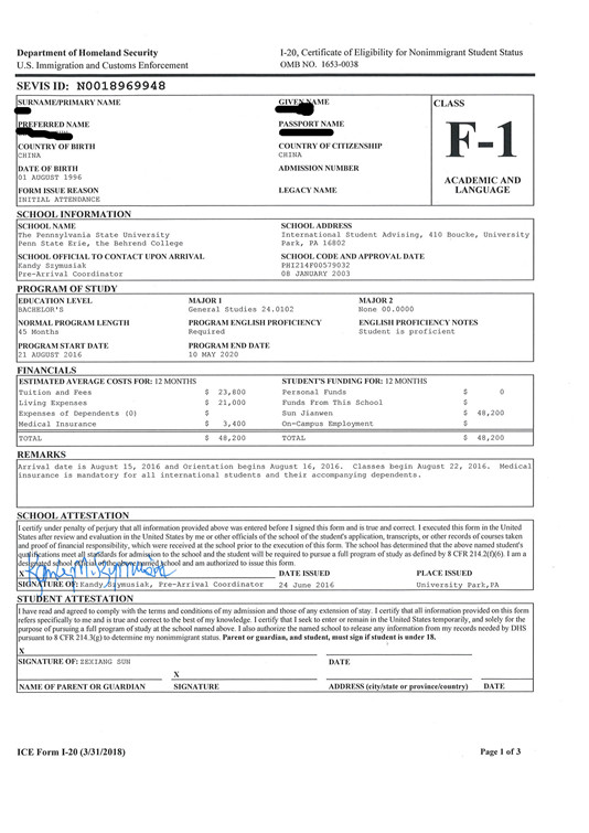 申请过程仍在继续,不过孙同学拿到了宾州州立大学,塞顿霍尔大学等大学的录取,并且其中某些学校还是全奖。也就是说他大学4年期间几乎不用花一分钱,这样的待遇非常罕见。拿到如此理想的结果跟所有同事的努力密不可分。前期精准的选校,后期文书的制作,每一步都需要紧密配合。孙同学的履历中有很多出彩的地方,比如他虽然GPA方面有所欠缺,后后期又修了多门AP,并被评为AP Scholoar. 再比如,他15年底已经修完高中课程,接下来半年的时间已经安排好去附近的社区大学修一些大学课程,为将来做好准备。文书里我们把这些材料详细整理,有效的展现了孙同学积极,成熟,充满正能量的形象。