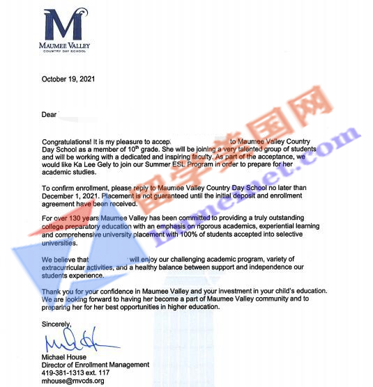 Maumee Valley Country Day School建校于1884年,位于俄亥俄州的托莱多市,气候四季分明,平均气温与北京相似,相对较湿润。Maumee Valley是俄亥俄州西北部最好的学校之一,是托莱多市最好的私立高中。校园75英亩,国际学生60人。