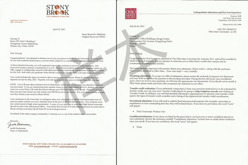 录取学校:纽约州立大学石溪分校,俄亥俄州立大学,马里兰大学,匹兹堡大学。