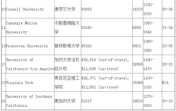 2017年USnews美国大学电子通信工程本科排名(含博士)