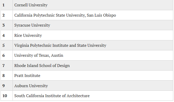 附录:2017年美国大学建筑专业排名TOP10
