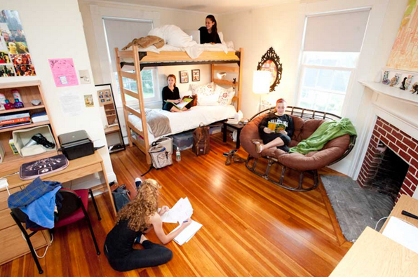 学校共有8栋宿舍楼,离教室不超过5分钟的路程。每间宿舍配有洗衣房和烘干机,在公共休息室有电视、VCR/DVD、微波炉、冰箱等设备,学生不允许在学习时间(9:00pm-10:00pm)或更晚看电视。学生宿舍内没有电视。